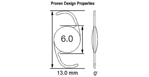 Model 601, designed as a Single Piece Lens of highly biocompatible hydrophobic acrylic material with advanced optics, and UV blocker. The haptic also manufactured from the same acrylic material with 0 degrees angulation and a total diameter of 13.0mm with a full 6.0mm square edge biconvex aspheric optic. The color of the lens is transparent and it is injectable through a 2.2mm incision using the titanium EL-22M Epsilon Injector in conjunction with the OD522 Ophtec cartridge. For the disposable option, use the Ophtec OD665 cartridge and injector or the Comport P by RET Inc. The lens is designed to be positioned in the posterior chamber. Available diopters from 0.0 to +34.0
